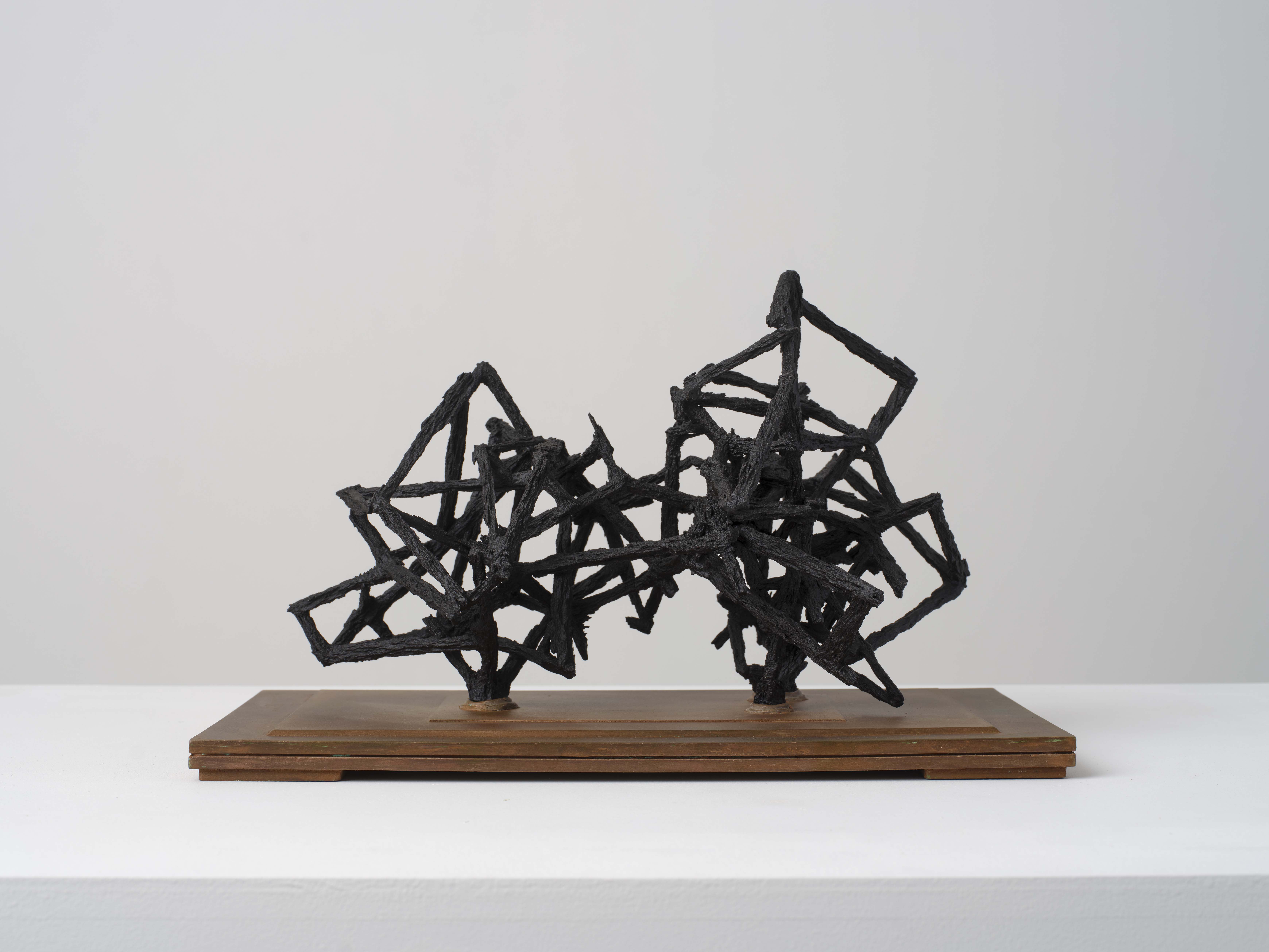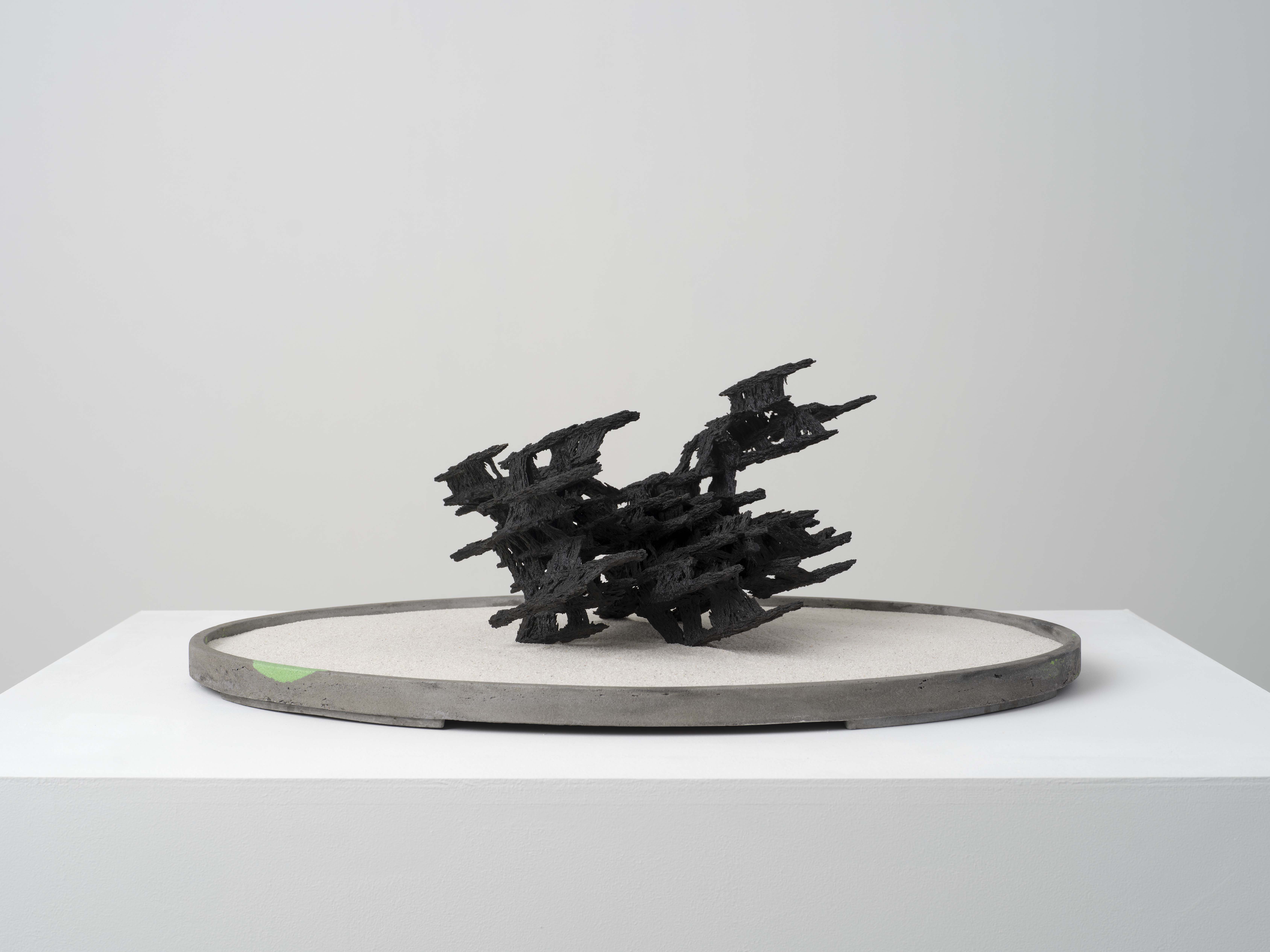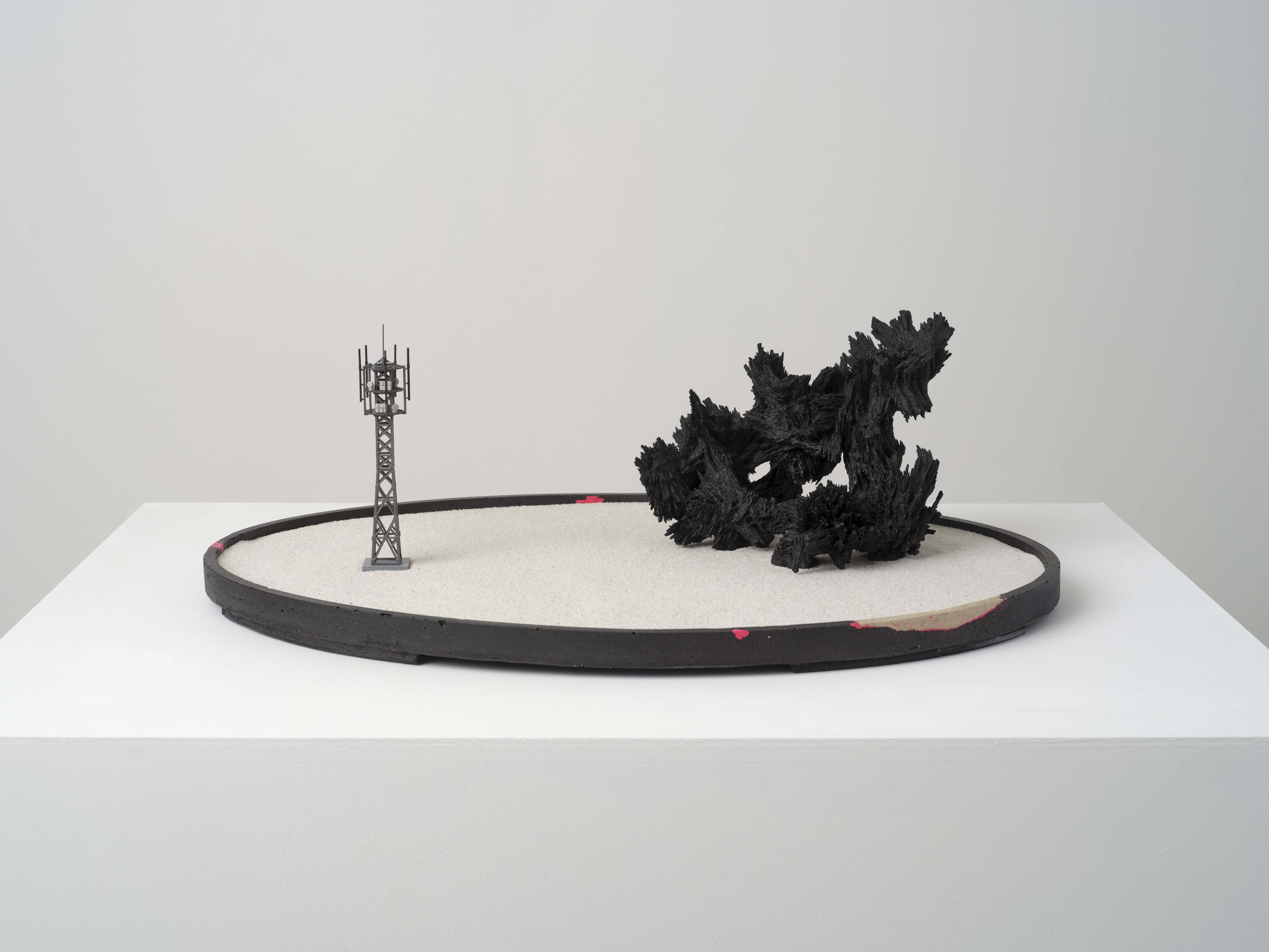 iron powder, cyanoacrylate resin, epoxy resin, pigment, Jesmonite, miniature cell tower model